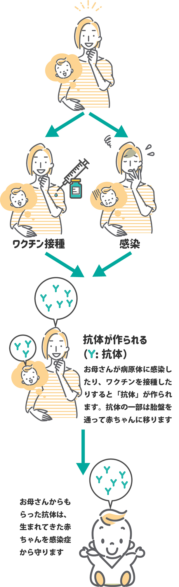 お母さんの抗体は赤ちゃんを感染症から守ります