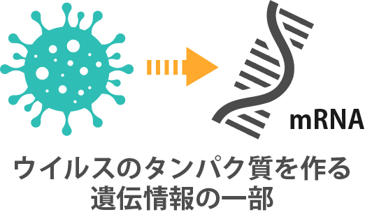 ウイルスのタンパクの設計図となるmRNAを接種すると、ヒトの体のなかでウイルスのタンパク質の一部が作られます。そのタンパク質に対する抗体が作られ、免疫を獲得します。
